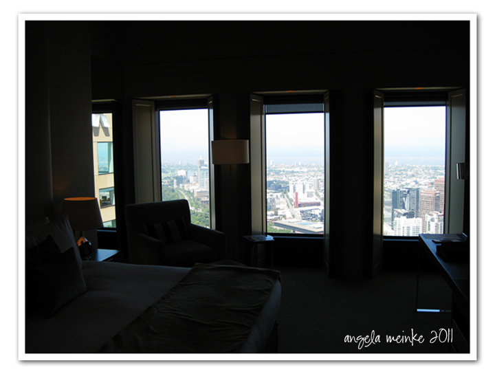 You can see below the view from our room which was on the 50th floor! Melbourne looked just beautiful with views across the Arts Centre, Tennis Centre, Albert Park, and the Bay in the background.
