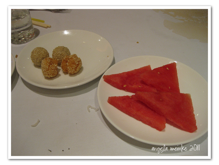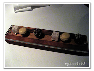 We finished our dinner with coffee for Angela, and Mariage Freres tea for Peter, accompanied with almond macarons, chocolate truffles and turkish delight and a glass of desert wine.